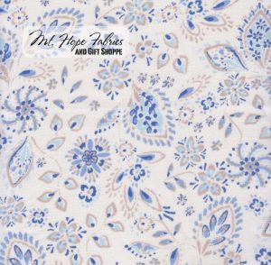 Linen Look Leaf Floral 117- Ivory/Blue