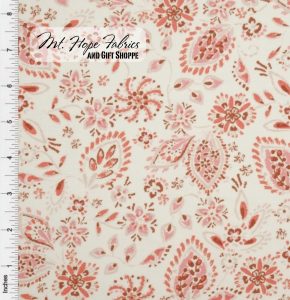 Linen Look Leaf Floral 117- Ivory/Rose
