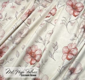 Variegated Poly Rib Knit- Sketched Peonies Lt. Mauve