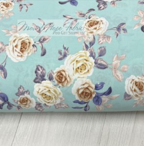 100% Polyester, SP Roses on Seafoam