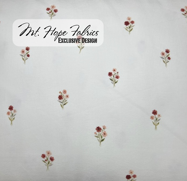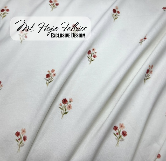 Cotton Spandex Knit- White Delicate Blooms