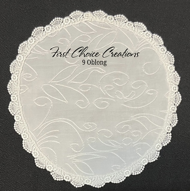 Embroidered Swirl Knit Oblong Veil, size 9, White