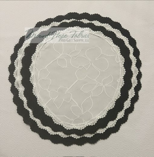 •Neatly edged in narrow lace trim, as shown.
