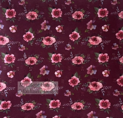 Poly Swiss Dots- Burgundy Floral 21
