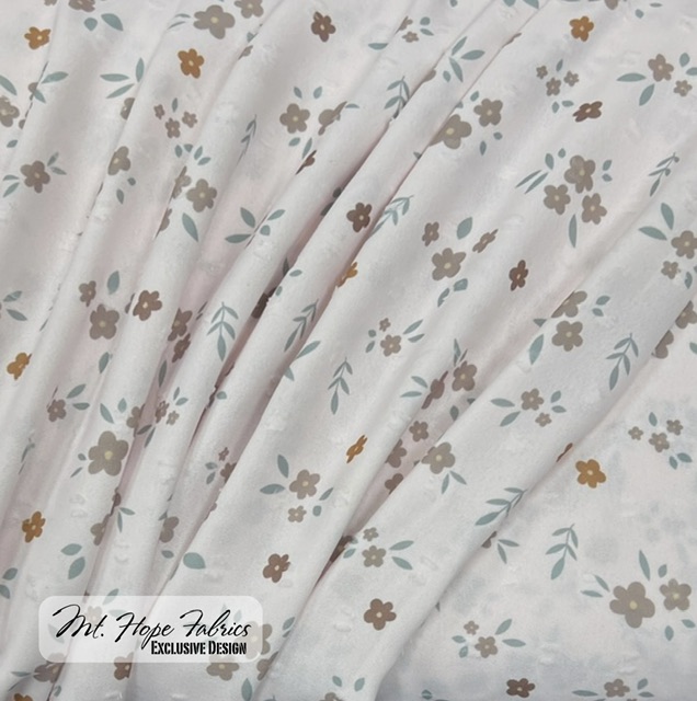 Categories: Exclusive Designs, Fabric, Non-Stretch, Non-Stretch Fabric, Polyester, Prints, Swiss Dots Tags: Floral, Green, Pink/Wine, Tan/Brown, White