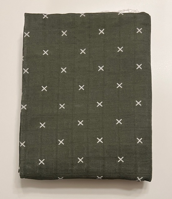 Remnant Piece- 1 yard Organic Double Gauze Olive X’s