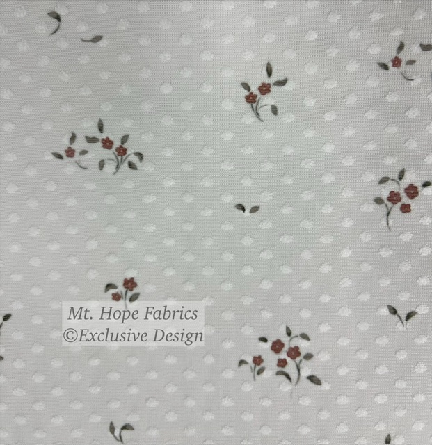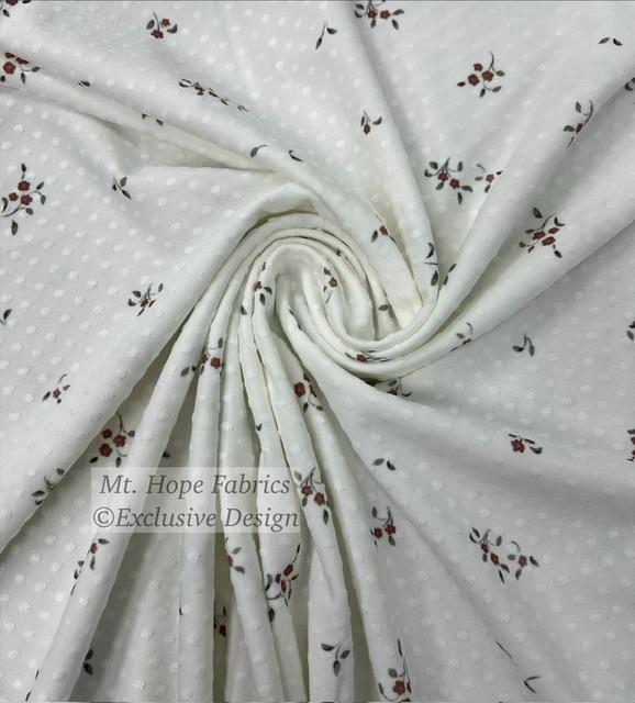 Categories: Exclusive Designs, Fabric, Swiss Dot Knits Tags: Floral, Tan/Brown, White
