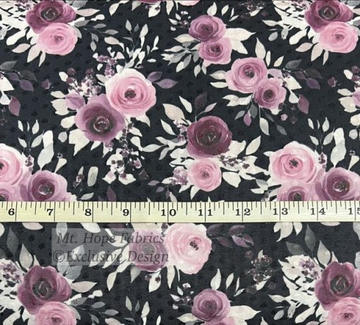 Swiss Dot Knit- Plum Roses on Black