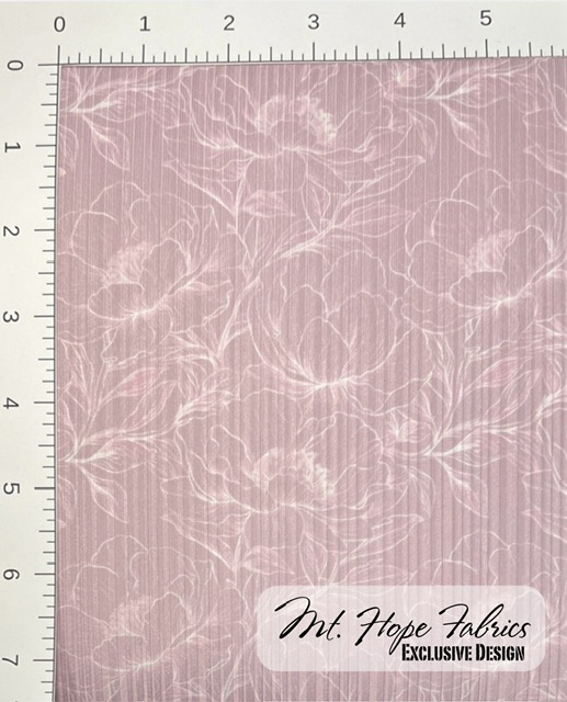 Variegated Poly Rib Knit- Sketched Peonies Lt. Mauve